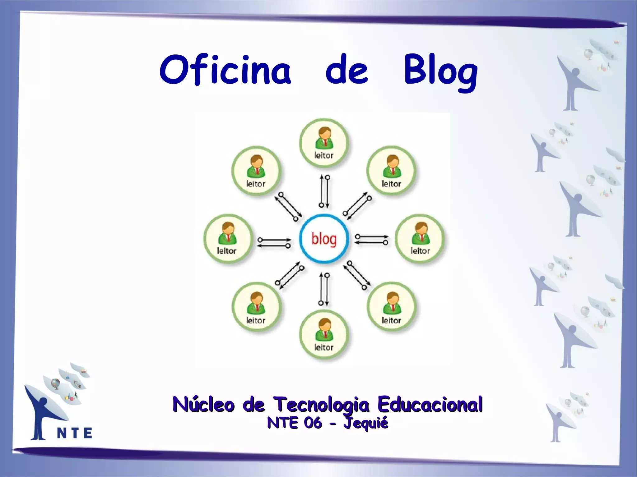 Este documento descreve uma oficina sobre o uso educativo de blogs para professores. A oficina ocorrerá em dois dias com 8 horas de duração e tem como objetivo principal apresentar como blogs podem ser aplicados no ambiente educacional, permitindo a divulgação de trabalhos de sala de aula e a interação entre professores e alunos.