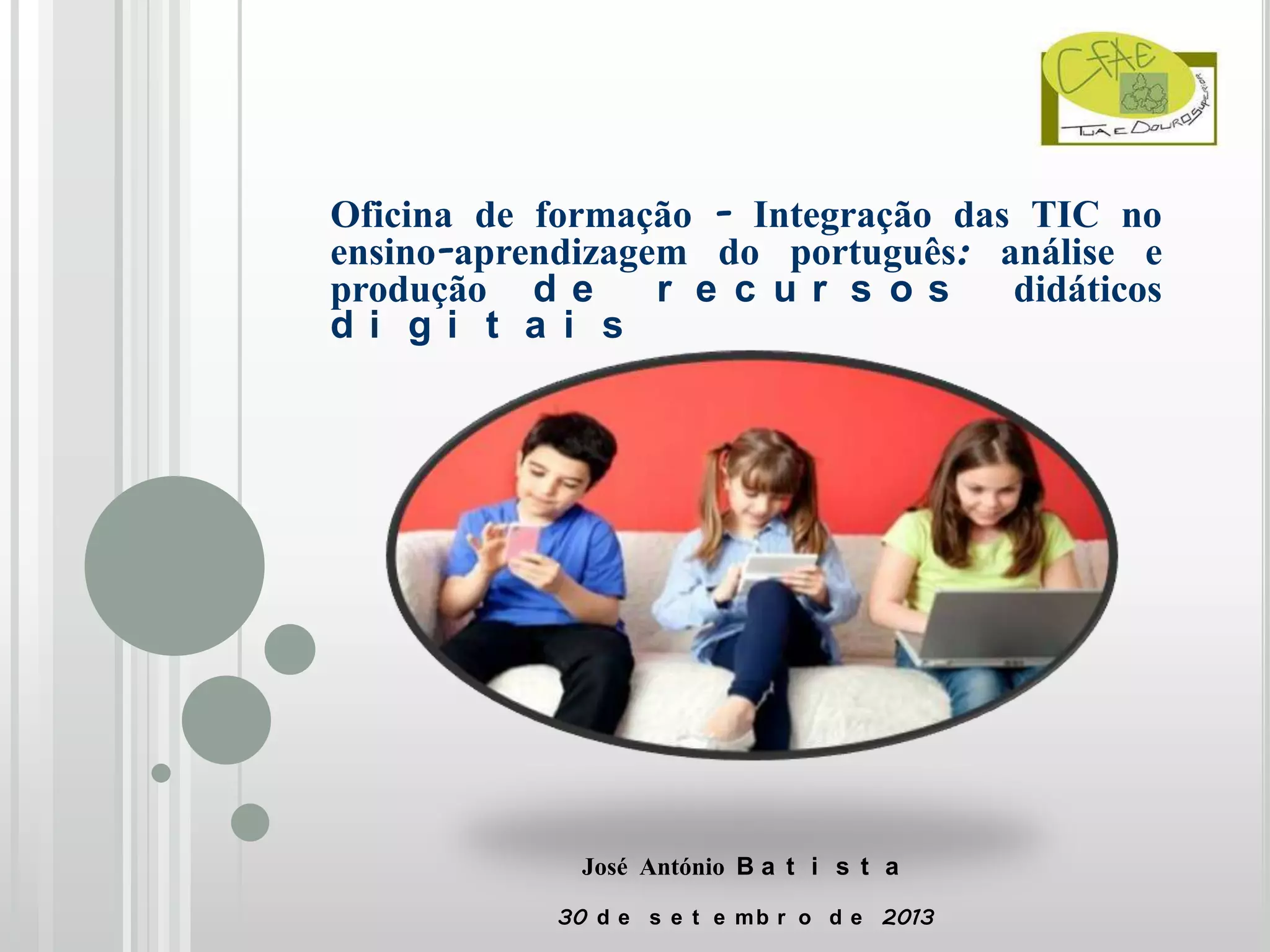 O documento discute a integração das tecnologias de informação e comunicação (TIC) no ensino e aprendizagem da língua portuguesa, propondo a análise e produção de recursos didáticos digitais. Apresenta vários conceitos e ferramentas relacionadas com as TIC e a Web 2.0 que podem ser usadas no contexto educativo, como blogs, wikis e nuvens de palavras. Defende que é importante integrar as TIC de forma propositada no processo de ensino-aprendizagem.