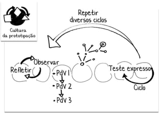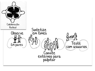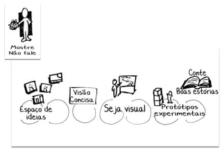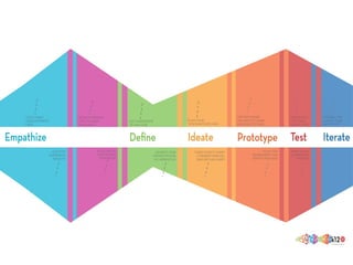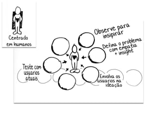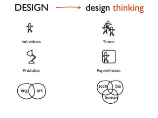 O documento é uma apresentação sobre Design Thinking, destacando a importância de entender o perfil dos alunos em cursos EAD para ações de marketing e relacionamento. É descrita uma abordagem centrada no ser humano que visa resolver problemas complexos através de quatro etapas: empatia, ideação, prototipagem e teste. O Design Thinking é apresentado como uma combinação de análise técnica e criatividade, com foco na inovação e na adequação às necessidades dos usuários.