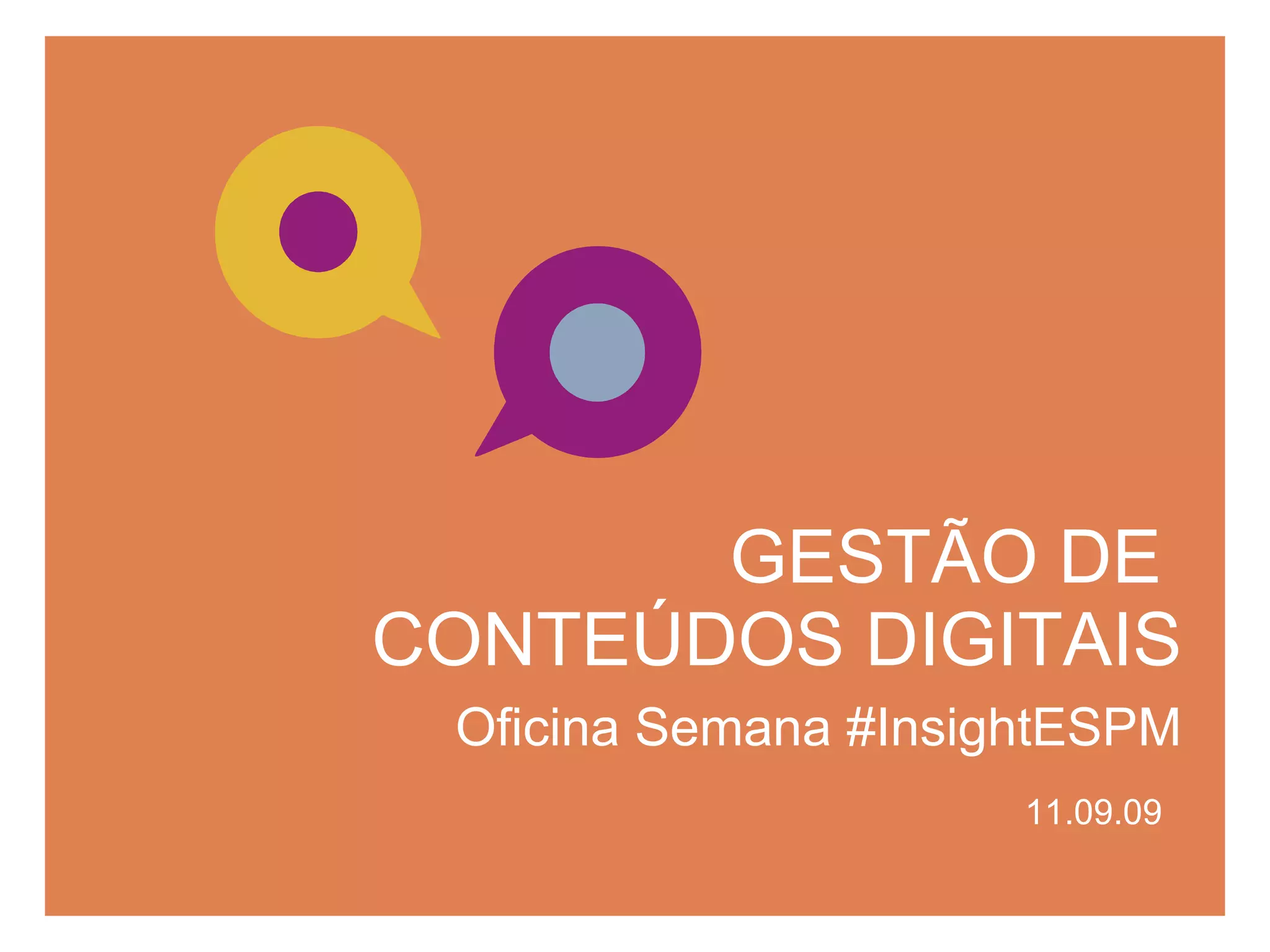Este documento discute as mudanças na gestão de conteúdos digitais com a convergência de mídias e a participação dos consumidores. Aponta que as plataformas vêm e vão, mas a inteligência na gestão permanece, e que o conteúdo vai além de notícias, requerendo estratégias de apresentação, resumo, detalhamento, persuasão e visibilidade. Convida para uma associação dedicada a explorar essas questões com abordagens que unam teoria e prática, mercado e acade