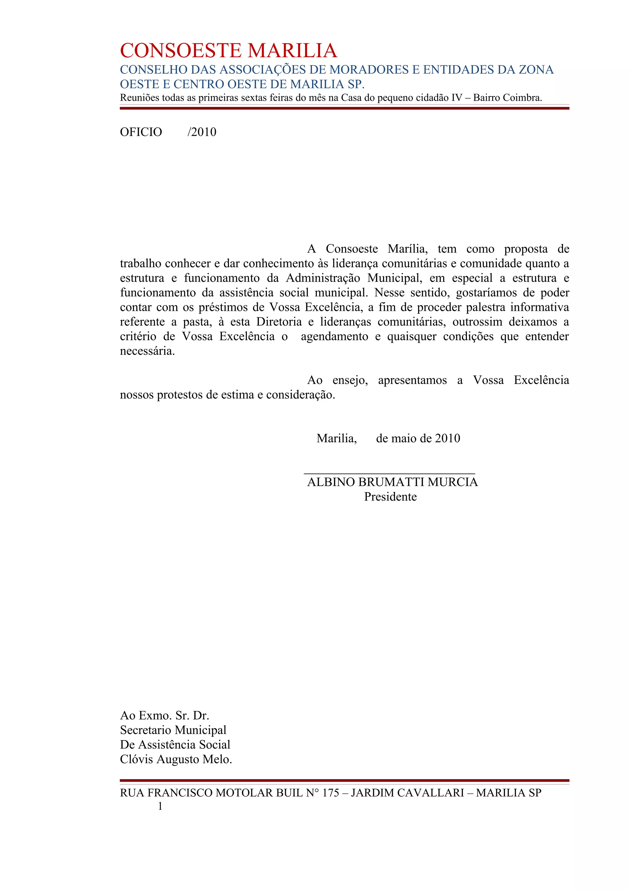 O Conselho das Associações de Moradores e Entidades da Zona Oeste e Centro Oeste de Marília (Consoeste Marília) convida o Secretário Municipal de Assistência Social, Dr. Clóvis Augusto Melo, para uma palestra sobre a estrutura e funcionamento da assistência social municipal. A palestra será para a diretoria e lideranças comunitárias da Consoeste Marília.