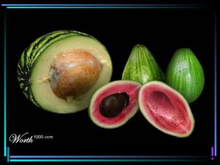 O documento discute alimentos geneticamente modificados, definindo-os como produtos que sofreram alterações genéticas através da troca de genes entre espécies diferentes. Fornece exemplos de organismos modificados, como tomates resistentes a fungos e morangueiros resistentes a geada através da adição de genes de outros organismos. Também menciona milho e soja geneticamente modificados para resistir a pragas e herbicidas.