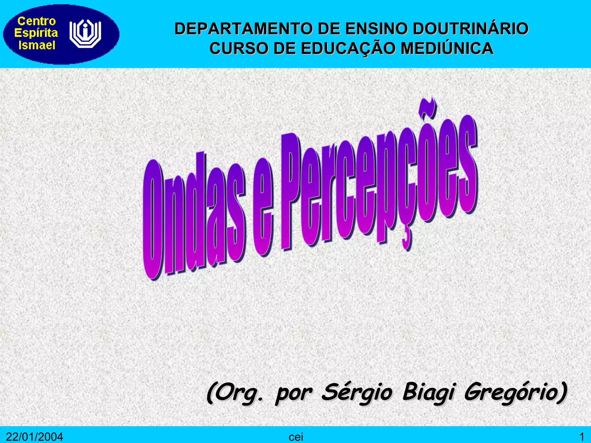 O documento discute as ondas e a percepção, definindo ondas, vibrações, frequência, amplitude e comprimento de onda. Ele também descreve os tipos de ondas eletromagnéticas e como a percepção mediúnica funciona através da sintonia com espíritos em diferentes frequências vibratórias. A conclusão enfatiza a necessidade de manter pensamentos curtos para se comunicar com espíritos superiores.