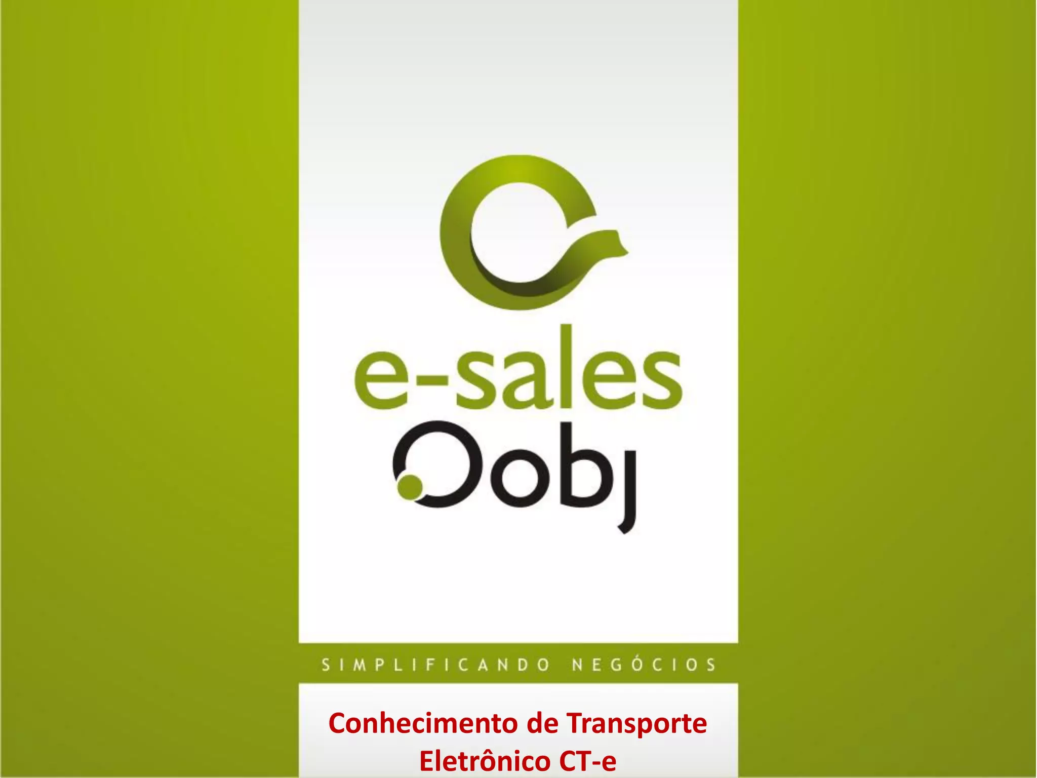 O documento descreve a solução Oobj CT-e da E-Sales para emissão de Conhecimentos de Transporte Eletrônicos (CT-e), incluindo seus módulos e funcionalidades para automatizar a emissão, recebimento, validação e gestão de CT-es de forma a atender às exigências legais e agregar valor aos processos dos clientes.