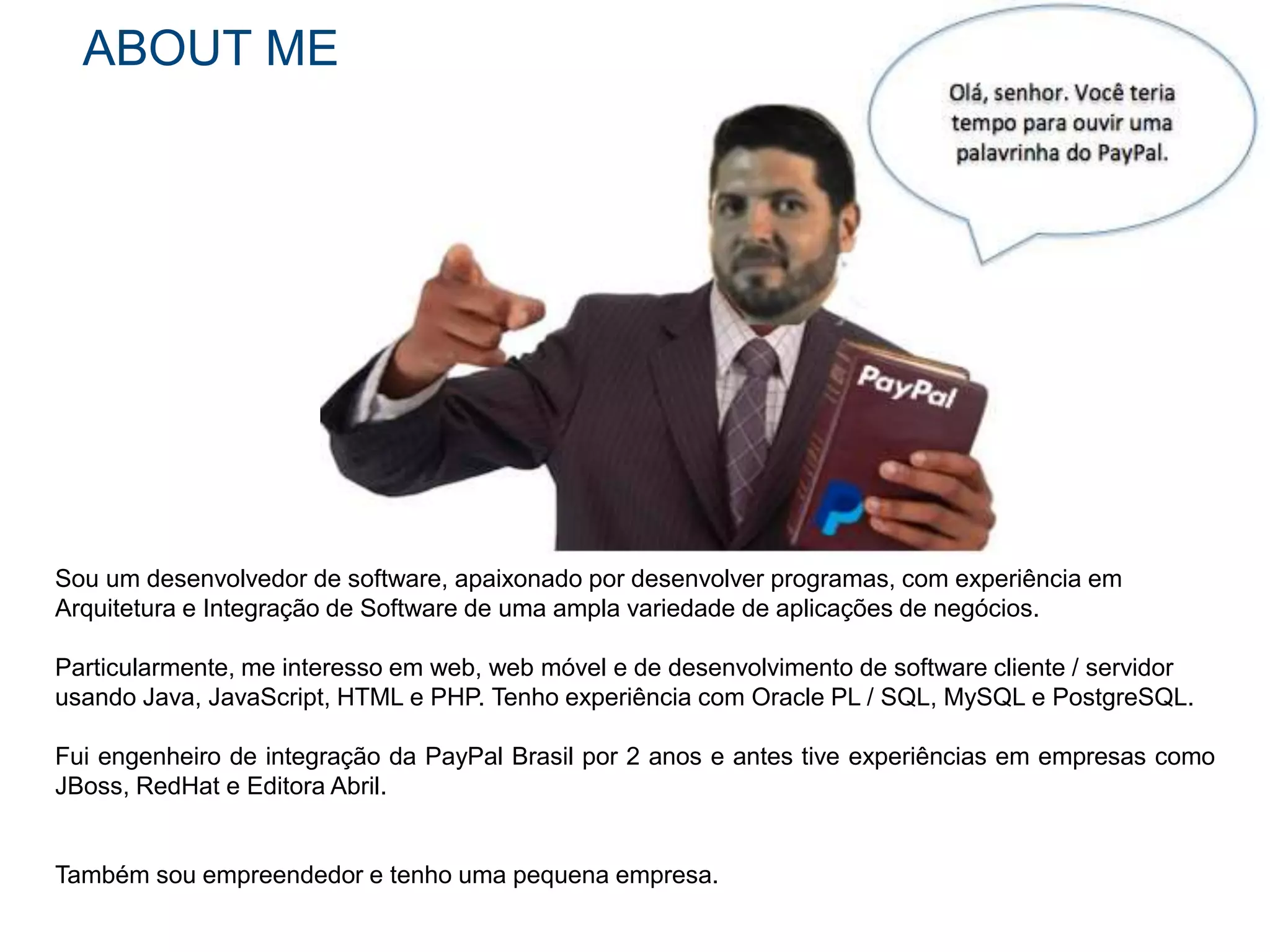 O documento discute o que é OpenID Connect e como criar um aplicativo usando OAuth 2.0 para autenticação com serviços externos como o Login com PayPal. Ele explica o que são OpenID e OpenID Connect, como funciona o fluxo de login com PayPal e fornece links para documentação e demonstrações sobre como integrar a autenticação do PayPal em aplicativos.