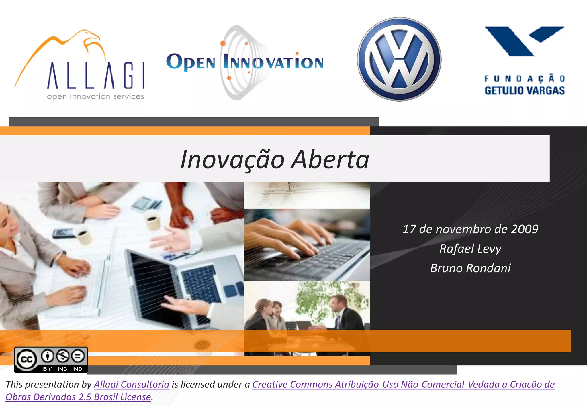 O documento explora o conceito de inovação aberta, destacando sua importância em contraste com o modelo de inovação fechada. Discute os desafios e a evolução das práticas de inovação, especialmente no Brasil, enfatizando a necessidade de colaboração e a utilização de conhecimentos externos. Apresenta iniciativas e políticas públicas que incentivam a inovação e a profissionalização das empresas brasileiras.