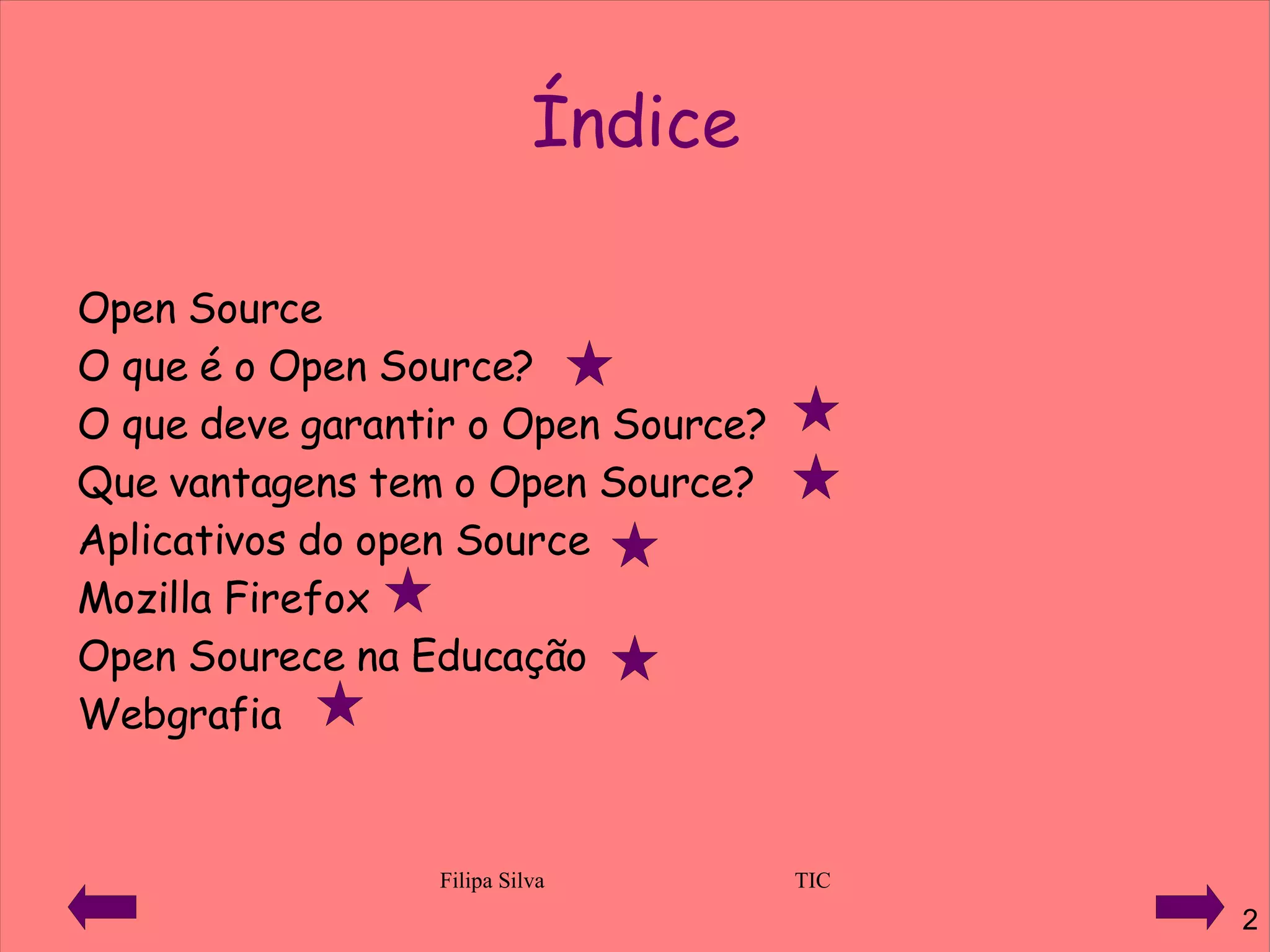 O documento discute o que é Open Source, seus princípios fundamentais como desenvolvimento compartilhado e código aberto, e as vantagens do Open Source como ser gratuito, evoluir rapidamente e dar mais liberdade ao usuário. Também apresenta exemplos populares como o navegador Mozilla Firefox e discute a importância do Open Source na educação por permitir que escolas e alunos acessem software livre e de qualidade sem custos.