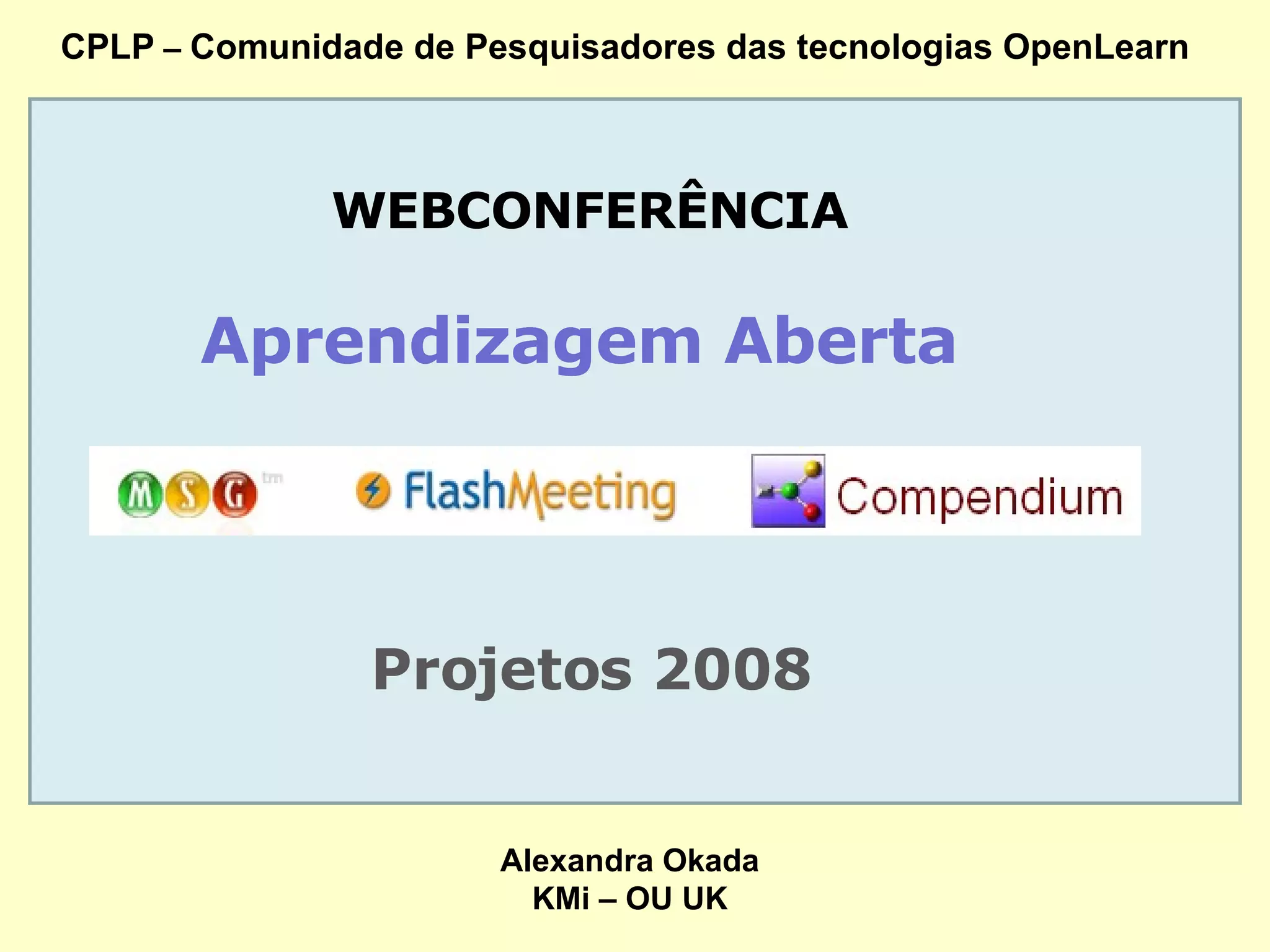 1) A Comunidade CPLP surgiu em 2007 para pesquisar tecnologias gratuitas para aprendizagem aberta em português. Atualmente inclui participantes de vários países.