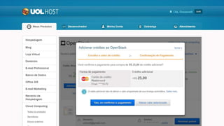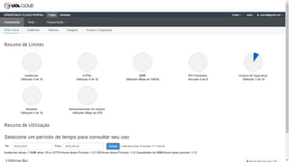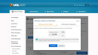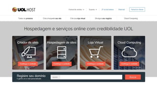 Este documento apresenta as credenciais de Roosevelt Nascimento como Head of Products B2C & B2B na UOL, e resume os benefícios da plataforma de computação em nuvem UOL Host, incluindo suporte técnico, preços competitivos, recursos avançados, modelo de software livre e sem lock-in. Detalha também os serviços oferecidos e como entrar em contato com a equipe de vendas.