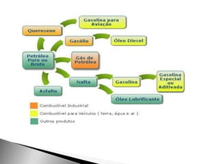 Os derivados dopetróleo são hidrocarbonetos sendo os mais leves formados por pequenas moléculas de