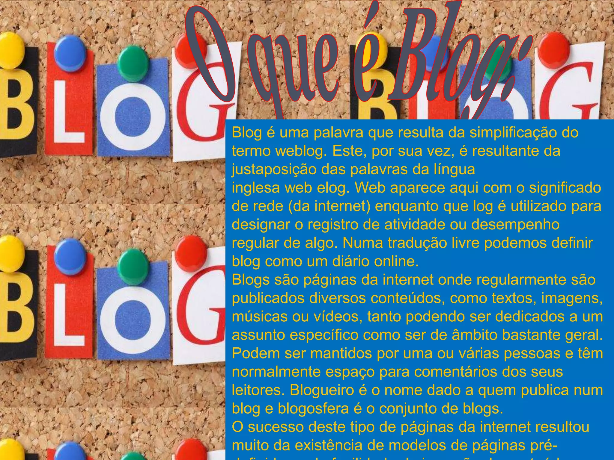 O documento discute a história e definição de blogs, desde seu surgimento em 1997 até sua popularização na década de 2000. Explica que blogs são páginas da internet onde pessoas publicam conteúdos como textos, imagens e vídeos de forma regular. Também aborda a diferença entre blogs e sites tradicionais e a importância de manter blogs atualizados.