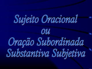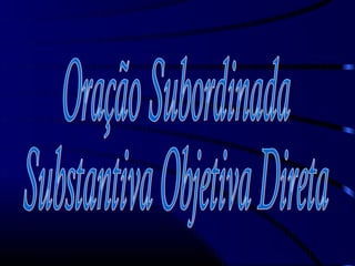 O documento explica as relações de dependência entre os termos da oração, como sujeito e predicado, e entre o verbo e seus complementos. Quando o sujeito ou objeto direto se expandem formando novas orações subordinadas substantivas, a relação de subordinação fica mais clara. Exemplos ilustram orações subordinadas substantivas subjetivas e objetivas diretas.