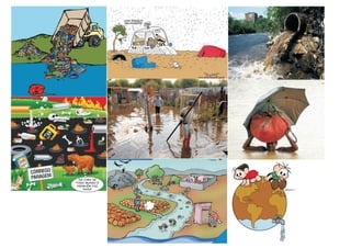 O documento discute a crescente demanda por água e os riscos da escassez futura. Ele destaca que o consumo humano de água aumentou drasticamente ao longo dos séculos e pode chegar a 90% do total até 2025 se não houver mudanças. Além disso, a poluição proveniente de esgotos, indústrias e lixões ameaça os recursos hídricos, comprometendo o abastecimento das cidades.