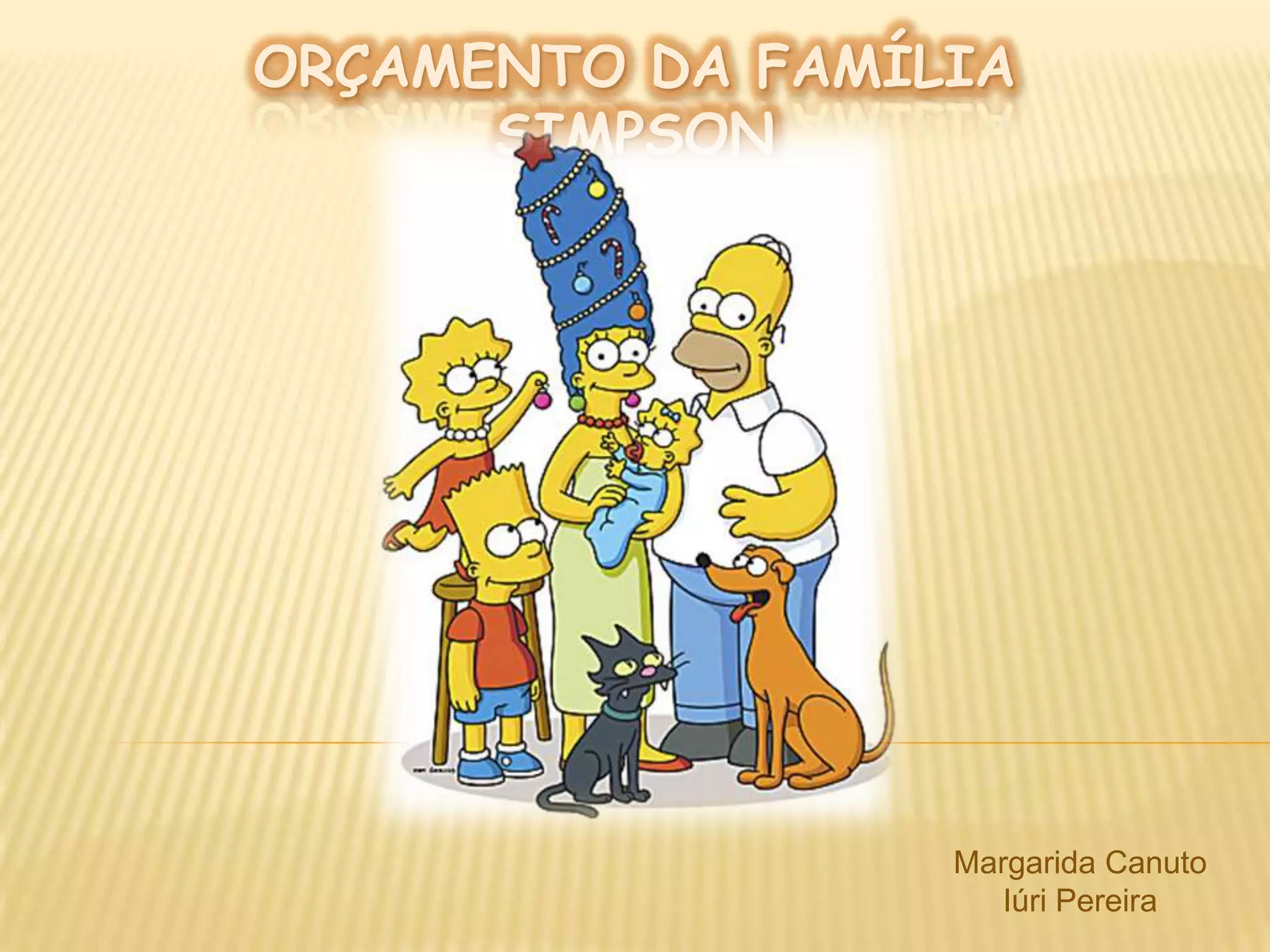O documento apresenta o orçamento mensal da família Simpson, composta por 5 membros. As despesas totais da família eram de 2.140€, enquanto os rendimentos somavam 2.200€, deixando apenas 60€ após pagamento de todas as contas. Para economizar, a família cortou 20% de certas despesas, como lazer e alimentação, economizando 94€ no total.