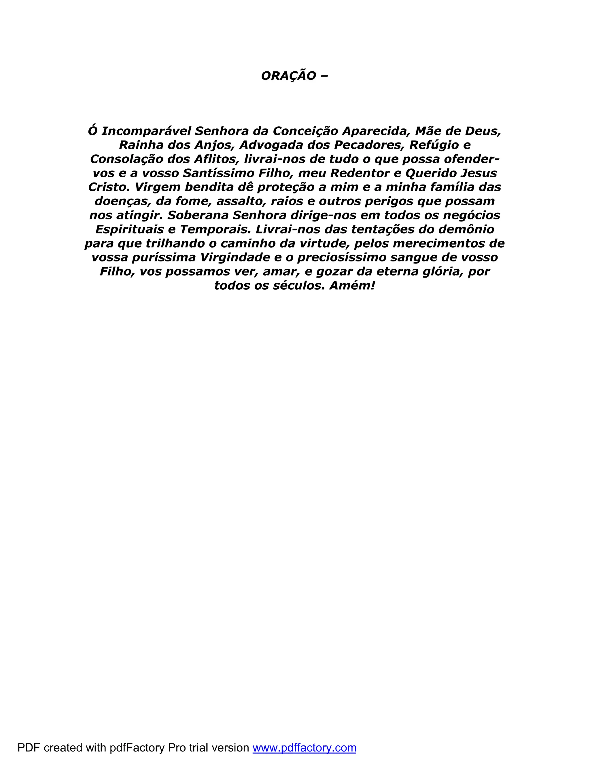 prometida por Nosso Senhor Jesus Cristo. Amém.
