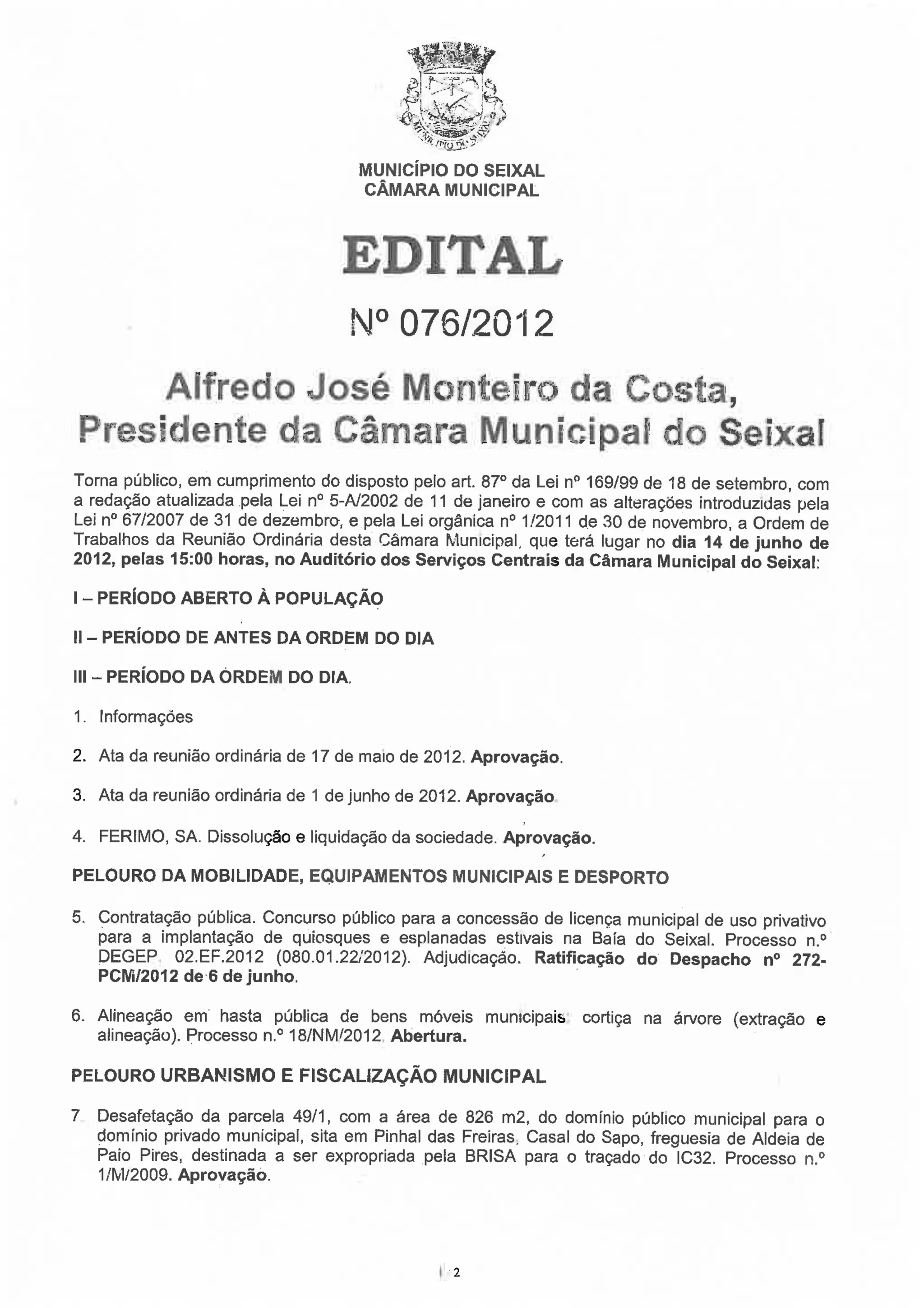 Cuncurso Público para a Concessão de Licença Municipal de Uso Privativo para ...