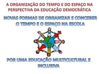 1. O documento discute a organização do tempo e do espaço escolar como categorias importantes na prática pedagógica que são construídas cultural e historicamente.