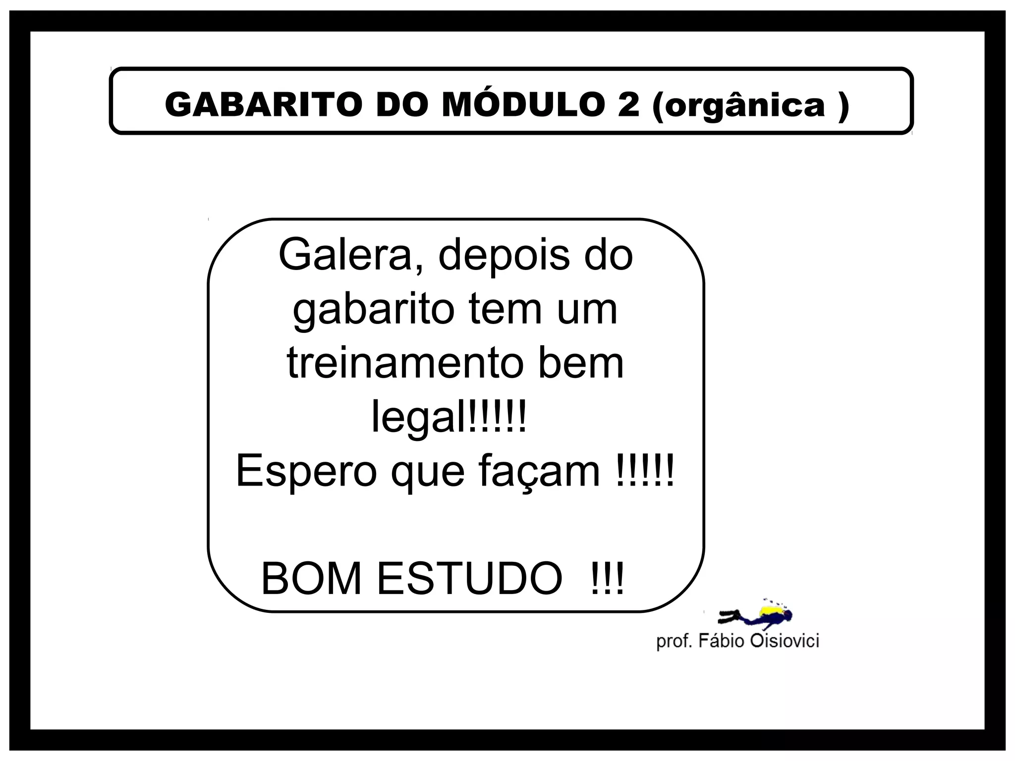 O documento fornece o gabarito de um módulo de química orgânica e um treinamento sobre cadeias carbônicas e hidrocarbonetos de cadeia normal. O professor encoraja os alunos a fazerem o treinamento e deseja bom estudo a todos.