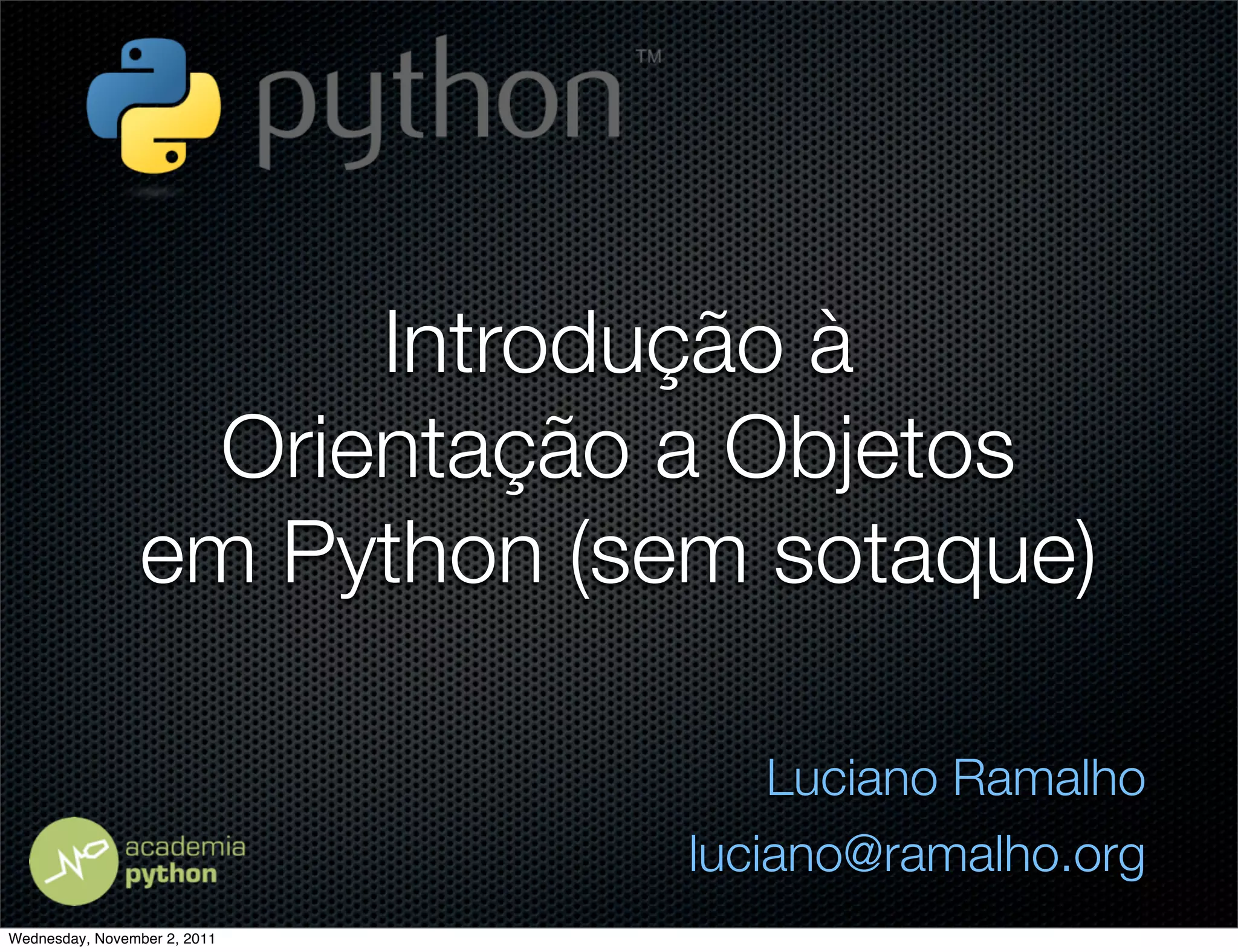 O documento aborda a introdução à programação orientada a objetos em Python, destacando conceitos como herança, encapsulamento e polimorfismo, além de discutir as particularidades da linguagem, como a tipagem dinâmica e a sintaxe das classes. Exemplos práticos são fornecidos, incluindo a definição de classes, métodos de instâncias, e a utilização de decoradores. Através de comparações com outras linguagens, o texto também ilustra as diferenças na implementação de conceitos de orientação a objetos em Python.