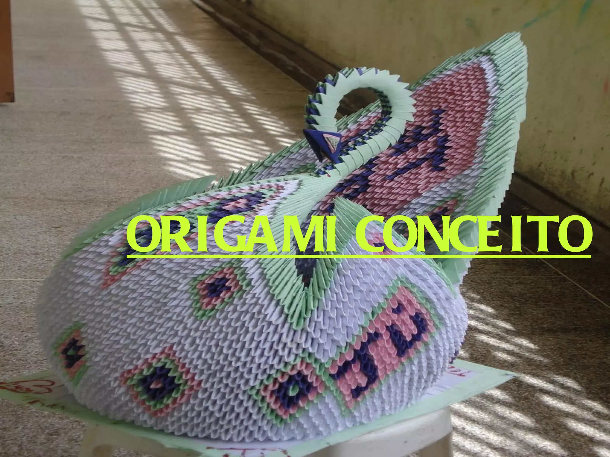 Origami éa arte japonesa de dobrar o papel. A origem da palavra advém do japonês ori (dobrar) kami (papel), que ao juntar as duas palavras a pronúncia fica "origami".