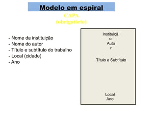 Este documento descreve a estrutura padrão para a formatação de um trabalho monográfico de acordo com a NBR 14724:2005. Ele contém seções como capa, folha de rosto, sumário, introdução, desenvolvimento, conclusão e referências.