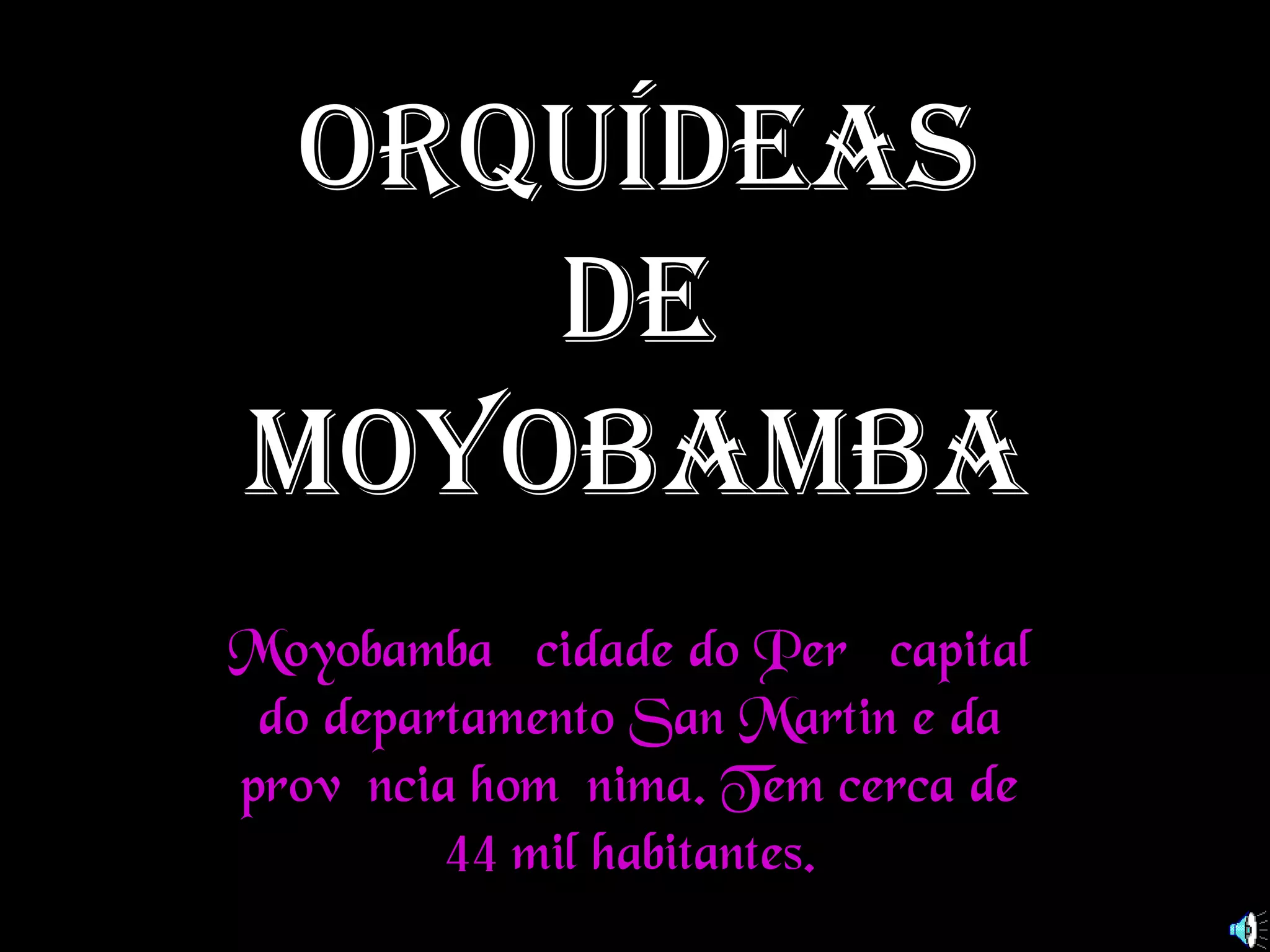 Moyobamba cidadedo Perú capital do departamento San Martin e da provîncia homônima. Tem cerca de 44 mil habitantes. Orquídeas de MOYOBAMBA
