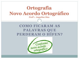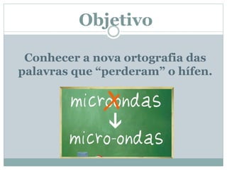 Este documento fornece instruções para uma atividade sobre as mudanças ortográficas no uso do hífen no Novo Acordo Ortográfico. Os alunos deverão elaborar um texto curto sobre como palavras que antes usavam hífen agora são escritas sem ele, comentar os textos de colegas no Google Docs, e discutir o tema no Twitter com referências bibliográficas.