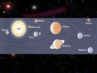 O documento descreve os principais astros do sistema solar, incluindo estrelas, planetas e a lua. Explica que a Terra e outros planetas giram em torno do Sol e fornece detalhes sobre as características de cada planeta, como seu tamanho, temperatura e luas.