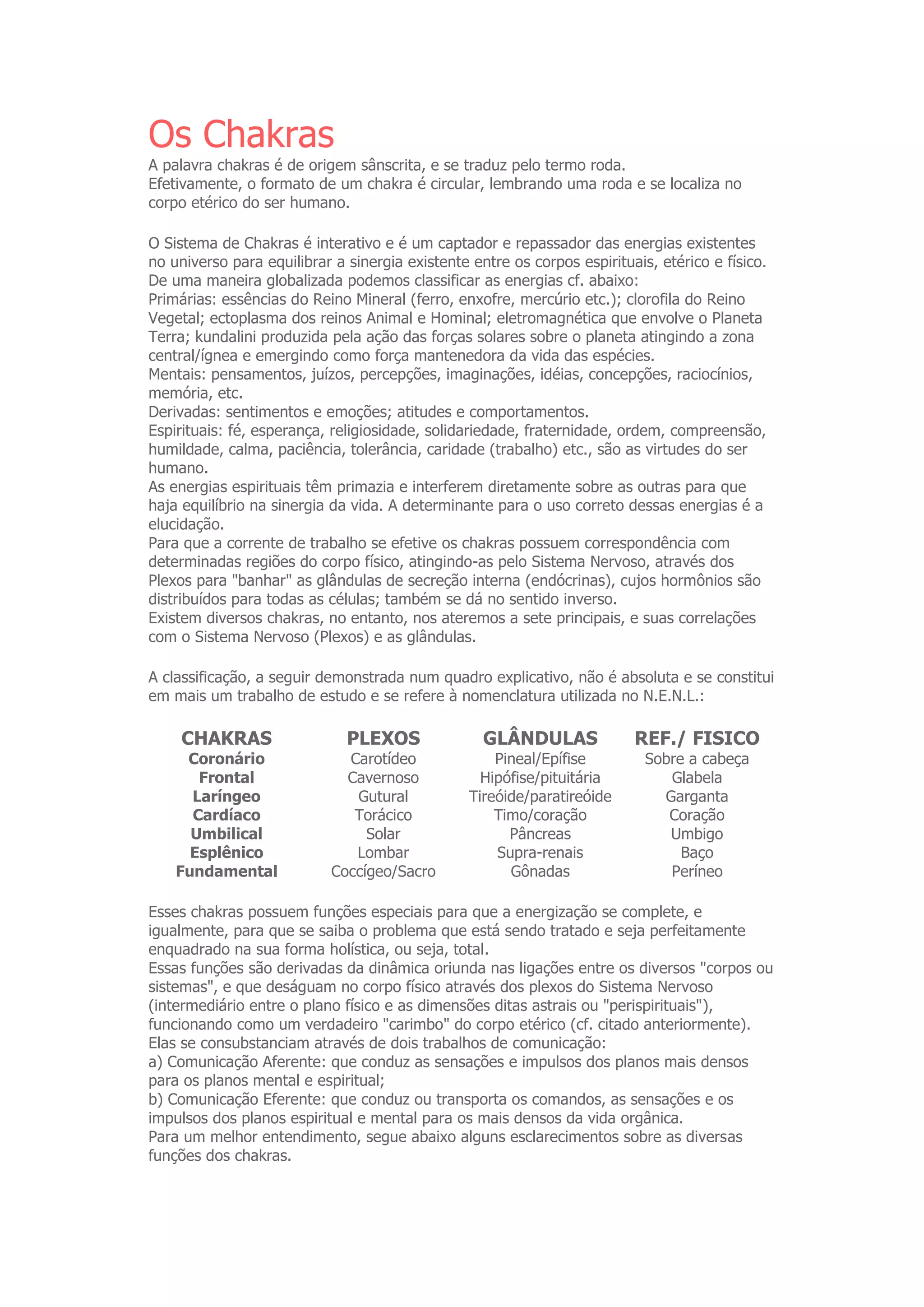 2) Existem sete chakras principais associados a partes do corpo e glândulas endócrinas.