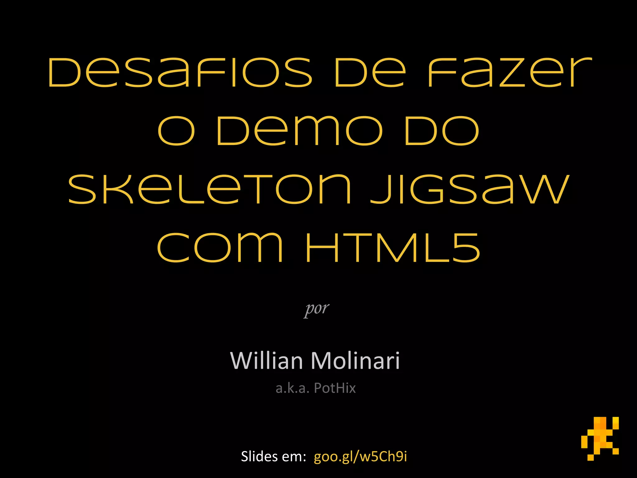 O documento discute os desafios de desenvolver um jogo de quebra-cabeça chamado Skeleton Jigsaw usando HTML5. Apresenta as vantagens e desvantagens de usar HTML5 para jogos, como distribuição fácil mas limitações de dispositivos e testes em navegadores. Detalha o código e assets do jogo, otimizações realizadas e estatísticas sobre o tempo de desenvolvimento.