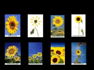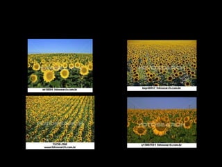O documento lista seis pinturas de girassóis feitas por Van Gogh em 1888-1889. Apresenta os nomes das obras com o número de girassóis em cada vaso. Finaliza com uma citação sobre a força dos girassóis em viver com o sol e um incentivo para sermos fortes como eles.