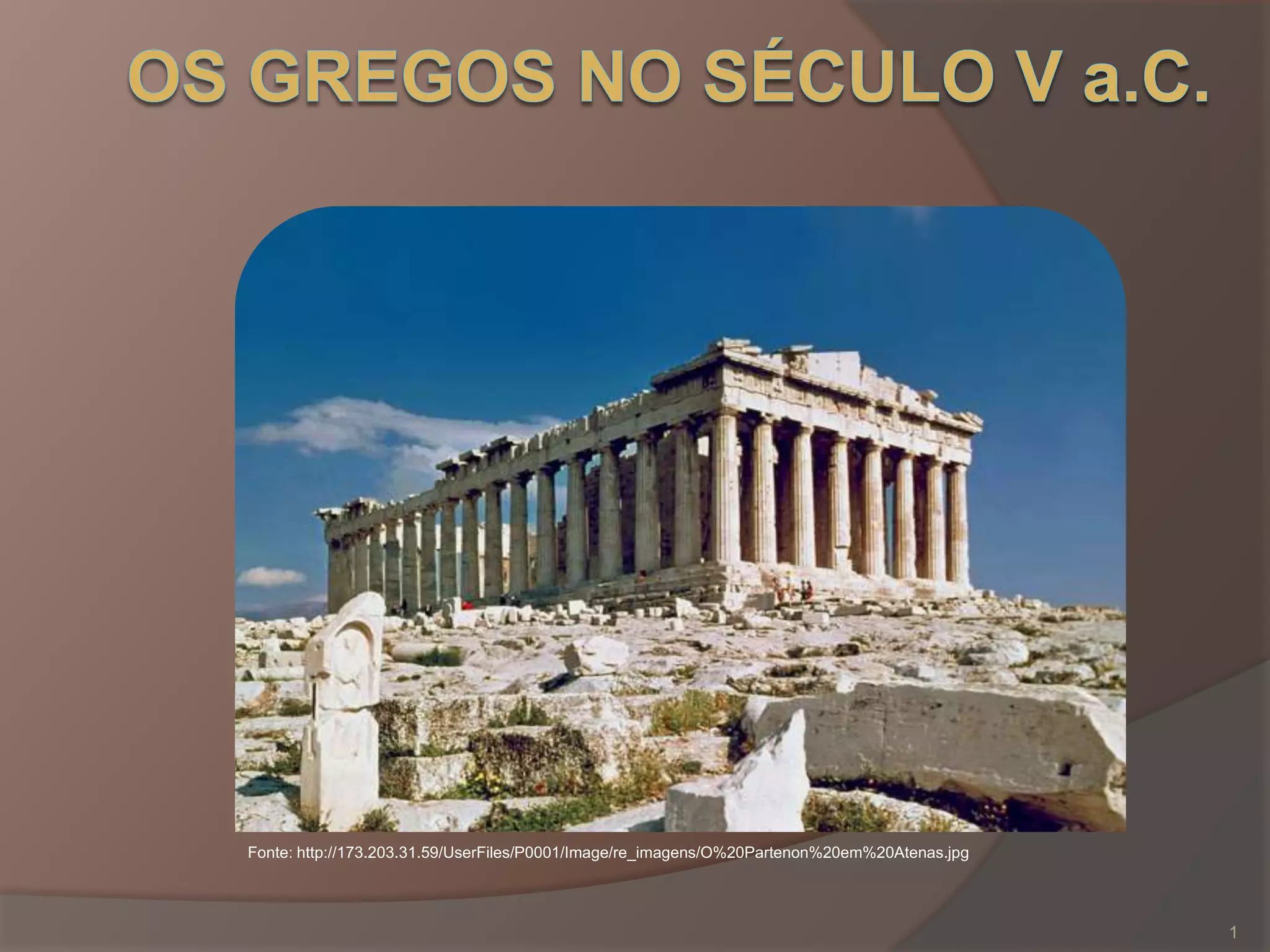 Este documento descreve a localização geográfica e origem do povo grego, as condições naturais da Grécia Antiga, a organização do território em cidades-estados independentes e a expansão marítima dos gregos no Mediterrâneo através da fundação de colônias.