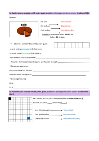 3. São apresentadas as partes que compõem um número decimal, como unidades, décimas, centésimas e milésimas.