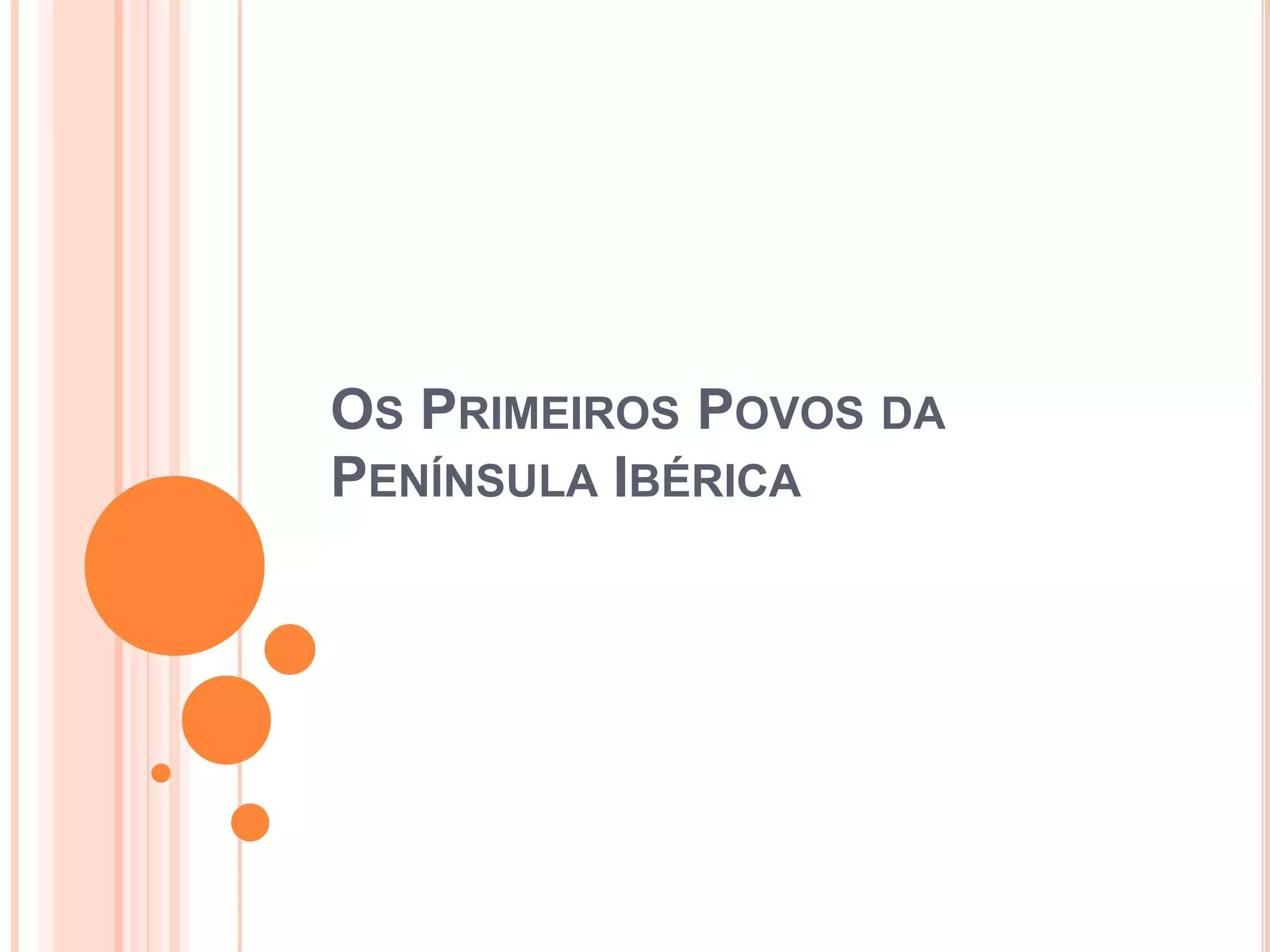 Este documento descreve os primeiros povos que habitaram a Península Ibérica, incluindo comunidades recoletoras nômades, comunidades agro-pastoris sedentárias, os iberos, celtas e lusitanos. Também discute os povos do Mediterrâneo como fenícios, gregos e cartagineses, assim como a chegada dos romanos, povos bárbaros, árabes e a reconquista cristã.