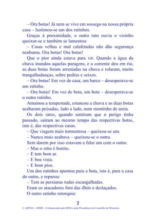 Dois ratos viviam em botas separadas, mas uma tempestade os forçou a se unir. Após ajudarem um ao outro a consertar suas casas danificadas, os ratos decidiram cultivar uma horta juntos e se tornaram amigos.