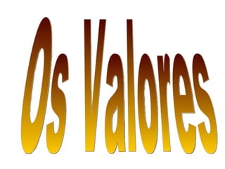 O documento lista e descreve diferentes tipos de valores importantes para a vida em sociedade, incluindo valores vitais, sociais, universais, políticos, religiosos, éticos e estéticos. Os valores sociais são definidos pela Declaração Universal dos Direitos Humanos e reconhecem a igualdade entre todos os indivíduos independentemente de cor, raça, religião, condição social ou orientação sexual.