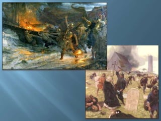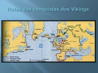 Os vikings eram povos originários da Escandinávia que se tornaram conhecidos como hábeis construtores navais e guerreiros ferozes, fundando colônias na Europa, Rússia, Groenlândia e América do Norte entre os séculos VIII e XI d.C., período de apogeu de sua cultura, caracterizada por assentamentos rurais, mitologia e religião próprias, antes de serem convertidos ao cristianismo.