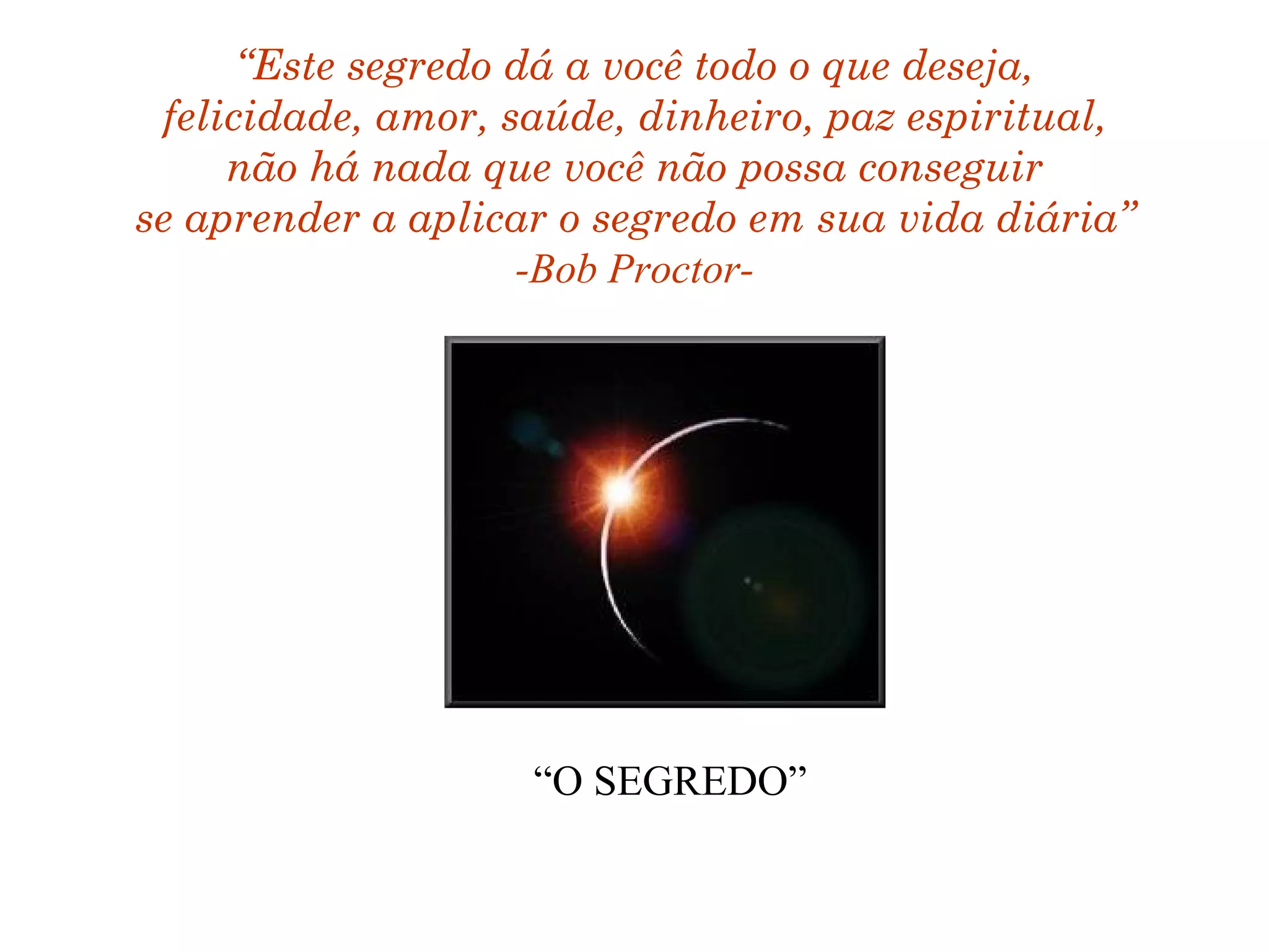 Este documento descreve "O Segredo", que é a Lei da Atração. Ele explica que nossos pensamentos atraem experiências correspondentes para nossas vidas, seja positivas ou negativas, e que podemos intencionalmente atrair o que queremos visualizando e se sentindo como se já tivéssemos alcançado nossas metas.