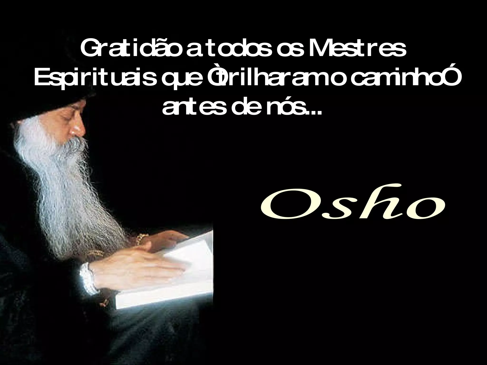Este documento contém vários ensinamentos espirituais sobre temas como gratidão, autoaceitação, compaixão, consciência, coragem, compreensão, inteligência, mente, raiva, fracasso, sexo, criatividade, gargalhada, esperança, inteireza, prece, abuso de poder, meditação e acidentes. Os ensinamentos enfatizam a importância de olhar para dentro de si, agir com consciência, ter coragem para mudar, transformar sentimentos negativos em positivos e encontrar Deus em toda parte.