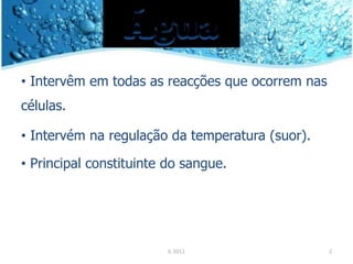 1) O documento discute os mecanismos de osmorregulação em diferentes organismos e ambientes, incluindo seres humanos.