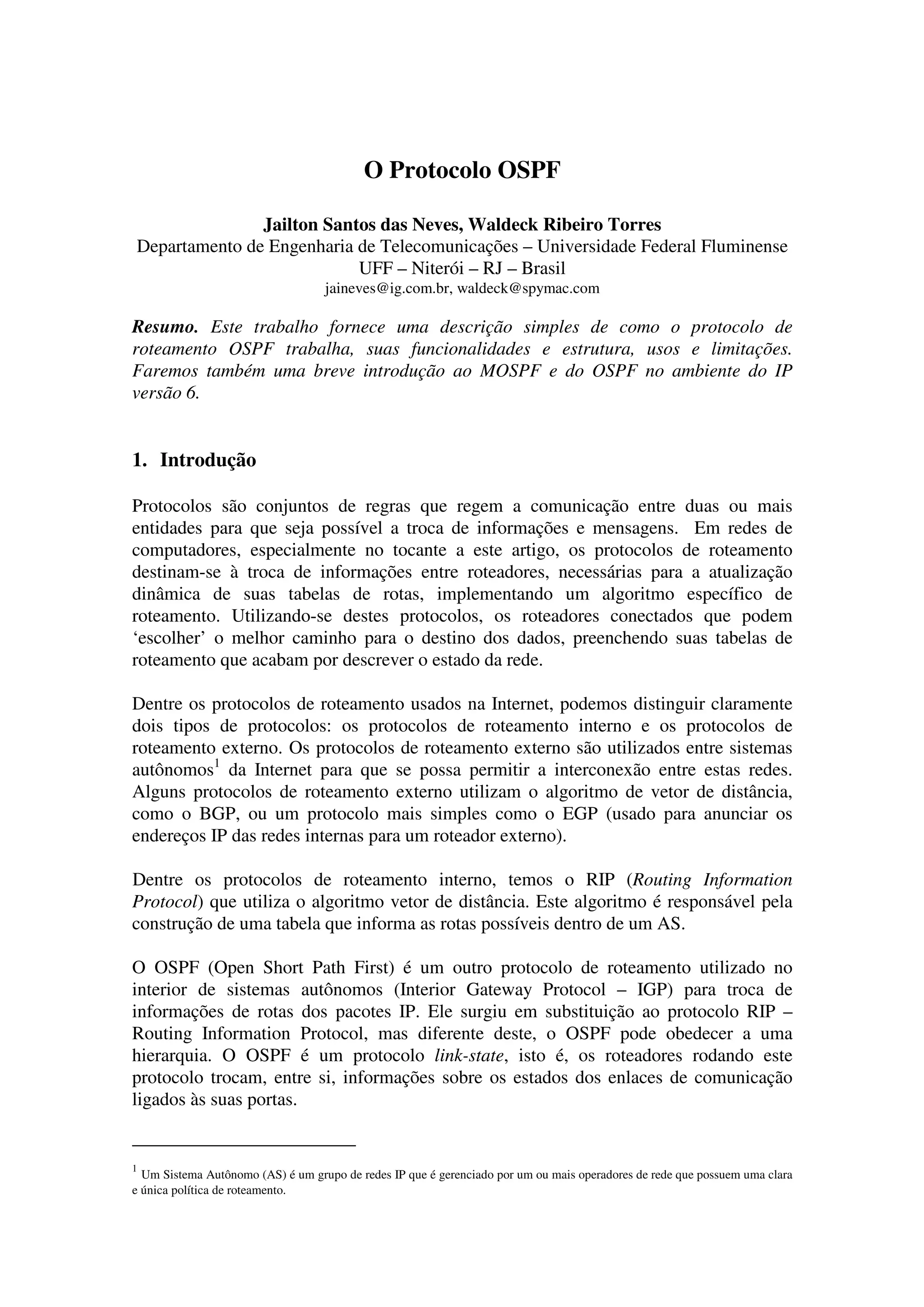 pacotes de atualização de estado de link (tipo 4) são envi