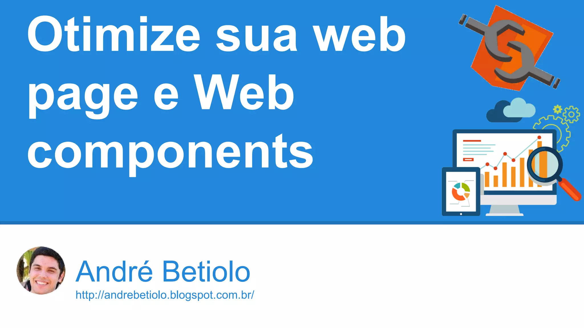 O documento discute como otimizar páginas da web e componentes web. Ele fornece dicas sobre modularização, compactação de arquivos, diminuição de requisições, cache e tratamento de imagens. Também aborda web components como custom elements, template, shadow DOM e imports.
