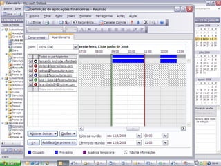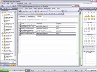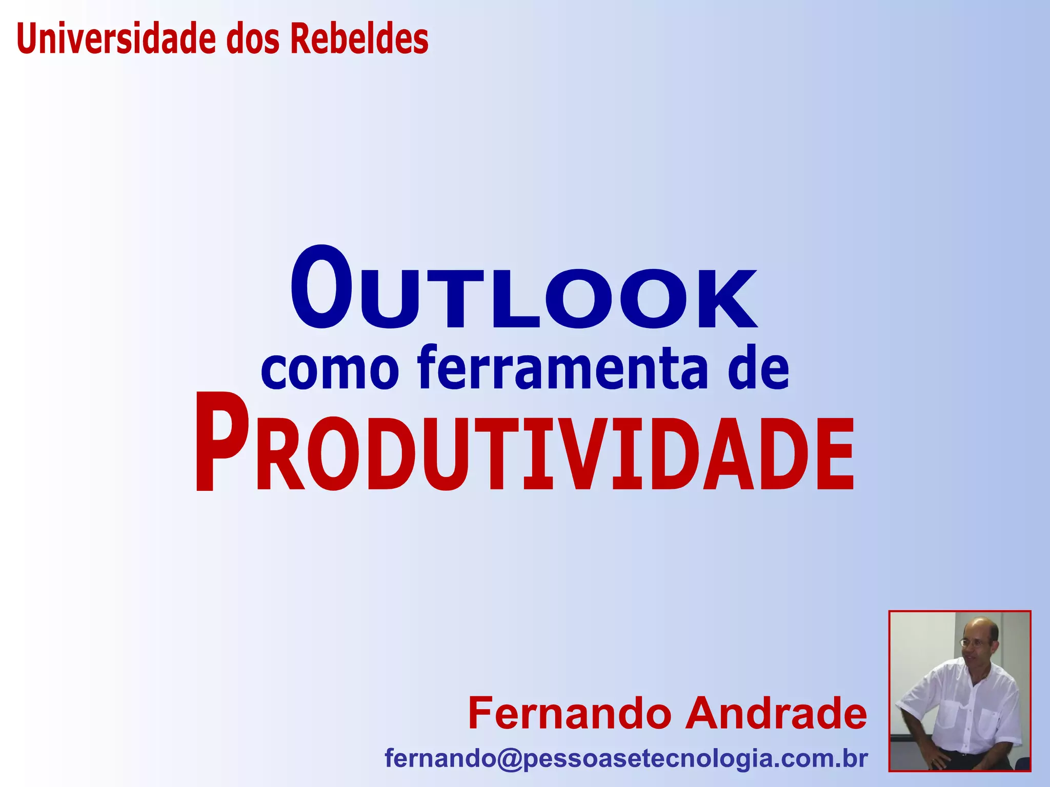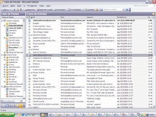 O documento fornece dicas sobre como usar o Outlook para melhorar a produtividade. Ele sugere organizar e-mails automaticamente, agrupar atividades de contatos e gerenciar tarefas atribuídas a outras pessoas. Também recomenda jogar fora anotações antigas e criar novas para manter a organização.