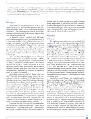 Este estudo comparou as características metabólicas de mulheres jovens obesas e não obesas com síndrome dos ovários policísticos (SOP) no sudeste do Brasil. As mulheres obesas com SOP apresentaram maior frequência de resistência à insulina, intolerância à glicose e síndrome metabólica. Além disso, tiveram níveis mais altos de colesterol total e triglicérides. No entanto, distúrbios metabólicos também foram comuns em pacientes não obesas com SOP,