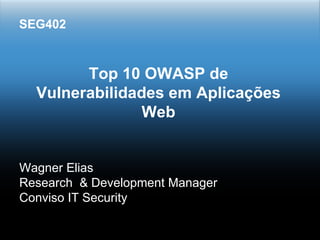 O documento resume as 10 principais vulnerabilidades em aplicações web segundo o OWASP (Open Web Application Security Project) e os recursos do .NET para mitigá-las, como validação de dados, autenticação e gerenciamento de sessão, criptografia e configuração de erros.