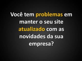O documento apresenta o editor de conteúdo online Oxipage, que facilita a atualização de sites de maneira rápida e flexível, eliminando a necessidade de webdesigners. Os usuários podem modificar seus sites facilmente, criando e publicando alterações instantaneamente. O serviço é direcionado a empresas que enfrentam dificuldades em manter seus sites atualizados.