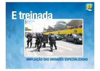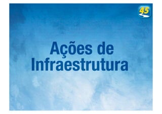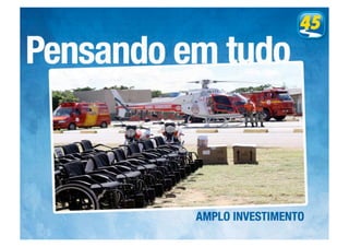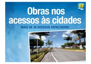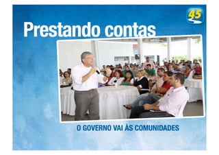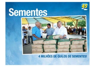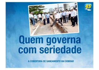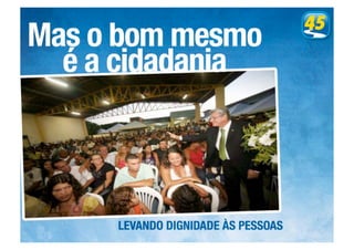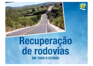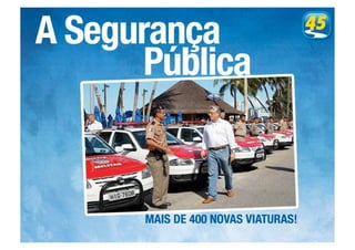 O documento descreve várias ações e obras realizadas pelo governo para promover economia, infraestrutura, saúde, segurança, educação e cidadania no estado. Grandes investimentos foram feitos em saneamento, transporte, indústria, habitação e agricultura, gerando dezenas de milhares de empregos.