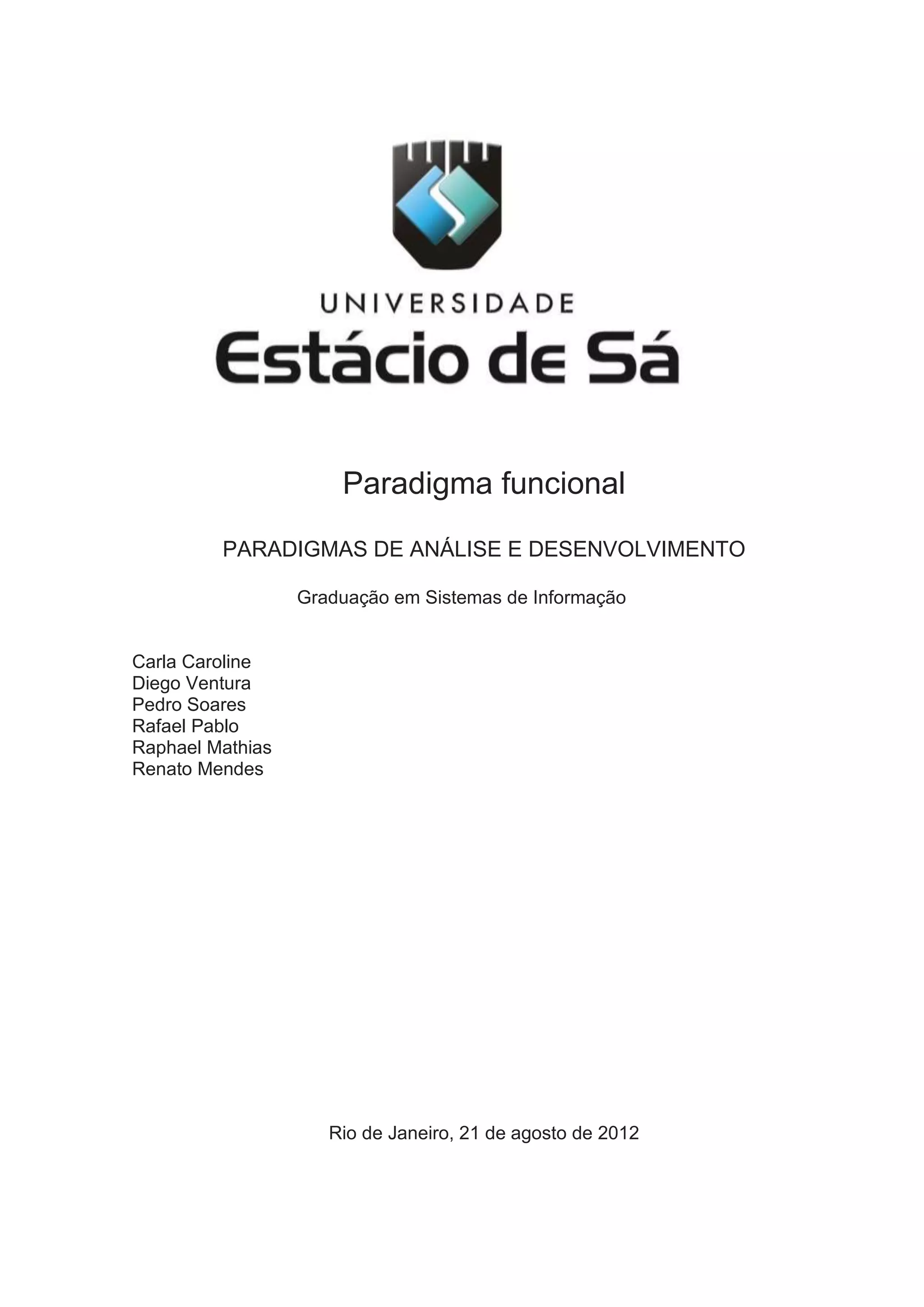 O documento introduz o paradigma funcional de programação, descrevendo suas características principais como tratamento da computação como avaliação de funções matemáticas e evitação de estado mutável. Explica a história do paradigma funcional e fornece exemplos de código funcional em Haskell, incluindo funções como soma de lista e quicksort.