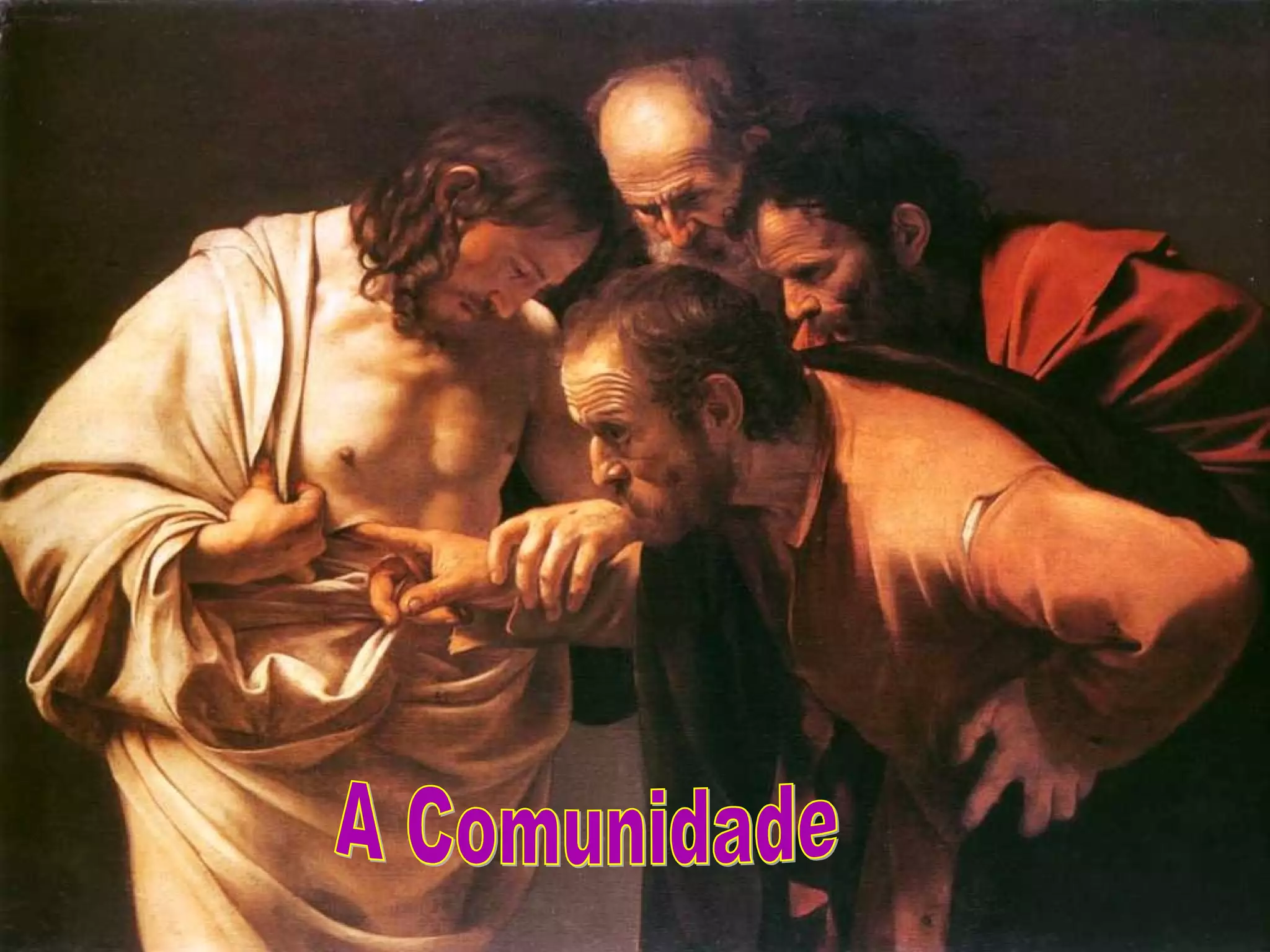 O documento discute como a comunidade cristã primitiva de Jerusalém atraía pessoas através de sua vida e testemunho de que Cristo estava vivo. A comunidade deve ser um sinal visível do Cristo ressuscitado para o mundo. O Evangelho mostra como Jesus apareceu à comunidade após a ressurreição, trazendo a paz, perdão e enviando-os em missão. A fé na ressurreição se renova na comunidade quando reunida, especialmente nos domingos.
