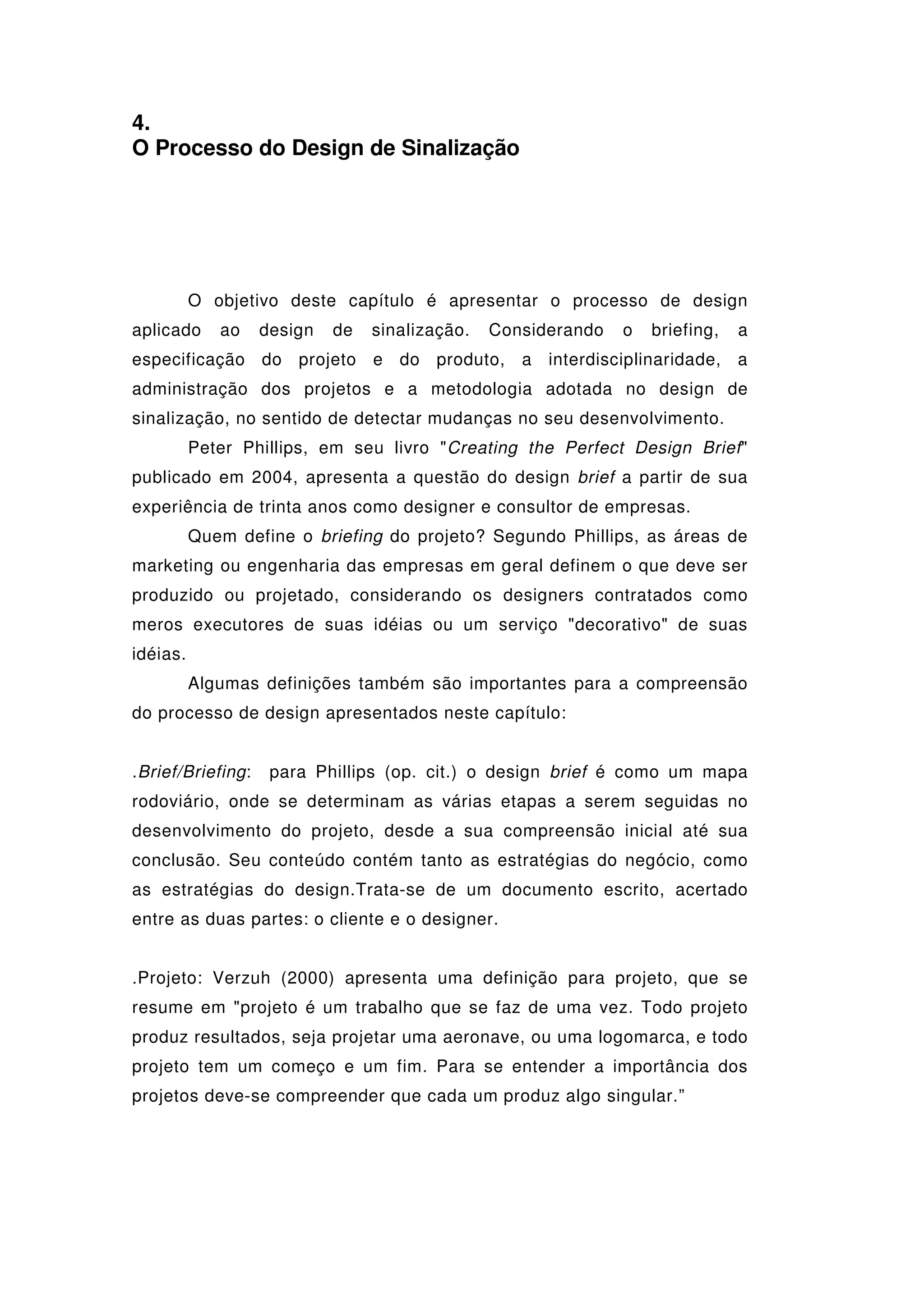 O documento descreve o processo de design de sinalização, incluindo a definição do briefing, especificação do projeto e administração do projeto. Também apresenta exemplos de metodologias para projetos de sinalização, envolvendo etapas como levantamento de necessidades, geração de alternativas e desenvolvimento do projeto executivo.